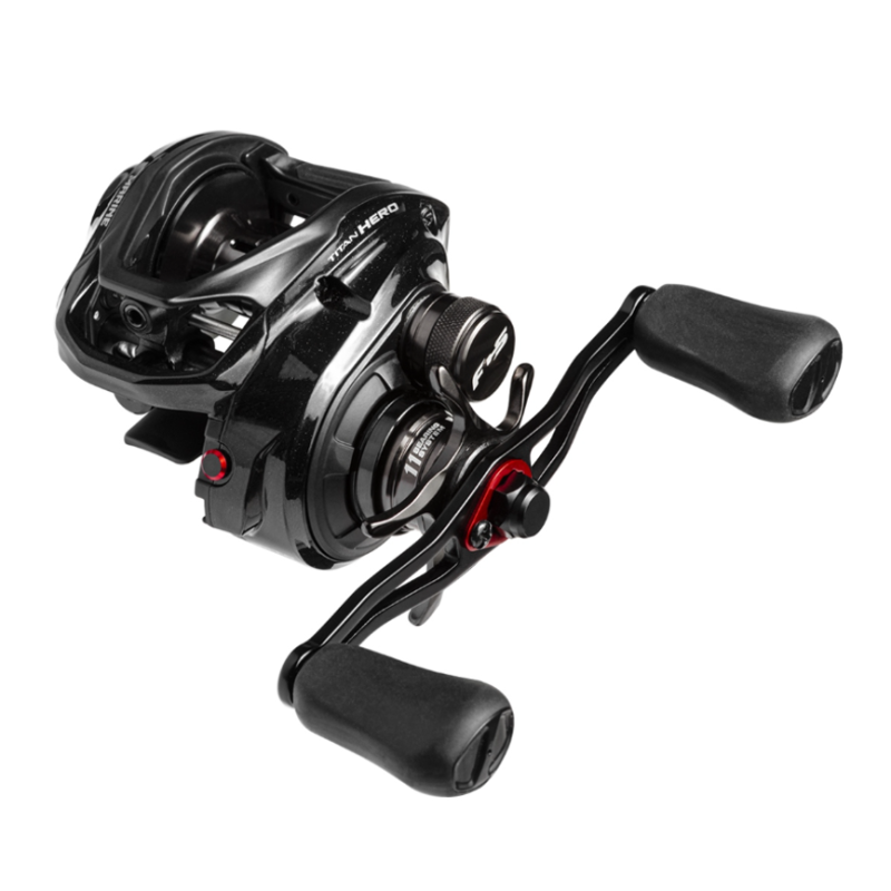 o Referencia TITAN HERO SHIL:Recuperación Izquierda, Capacidad de línea(mm-m) 0.30-130/0.33-110, Peso 170g, Relación de engranaje 8.1:1, Recuperación por vuelta 81 cm,Arrastre máximo 15 lb(6.8kg)