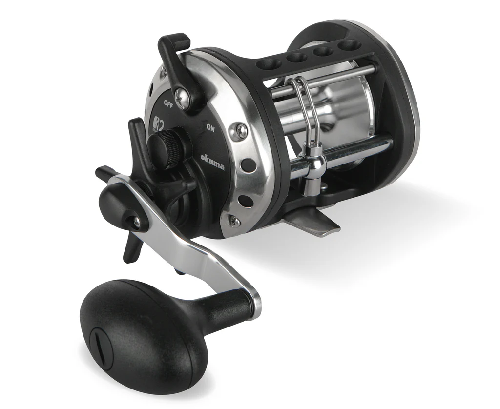 Incluyen el confiable sistema de arrastre multidisco de Okuma, sistema de engranajes auto lubricantes, sistema de guía de línea de viento nivelado de acero inoxidable, 2 balineras de bolas, bobina de aluminio mecanizado, manivela de poder estilo T, sistema de devanador de línea de acero inoxidable que asegura un espacio suficiente para usar “dobles nudos” cuando se pesca con líneas dobles.