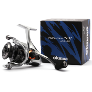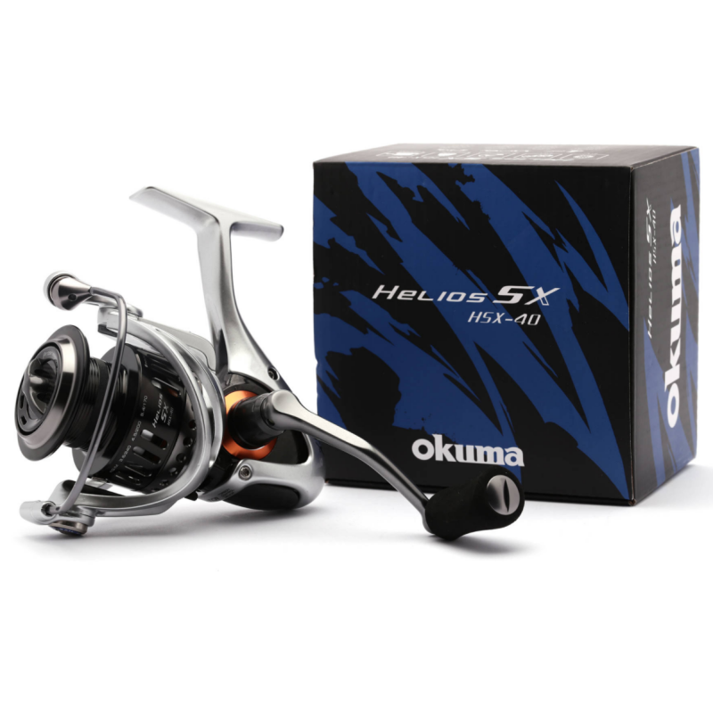 Los carreteles de spinning Okuma Helios SX están construidos con carbono C-40X, y el sistema TCA™, control de torsión del cuerpo, hacen que el reel sea extremadamente rígido y ligero de peso, también reduce la torsión y mantiene las piezas internas en perfecta alineación para la pesca en agua dulce y salada.