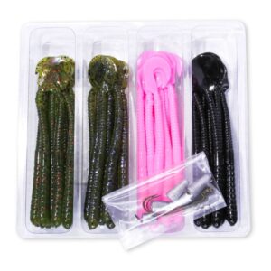 ¡Lombrices, lombrices y más lombrices! Reúne 50 lombrices Squirmin ‘, plomadas y anzuelos por un valor excepcional. Obtienes cuarenta lombrices de 15cm (6″) diez por cuatro colores; tres plomadas de lombriz de 1/4oz; tres plomadas de lombriz de 1/8 oz; y cuatro anzuelos (dos 1/0 y dos 2/0) .