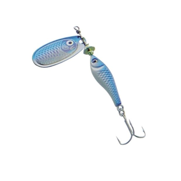 El Marine Sports Spinner Laser es un señuelo metálico de hundimiento (sinking) diseñado para pesca de depredadores, destacando por su hoja con diseño holográfico 3D reflectante. Disponible en pesos de 8g, 12g y 15g, ofrece vibraciones intensas, lances largos, y un anzuelo triple ultrafilado